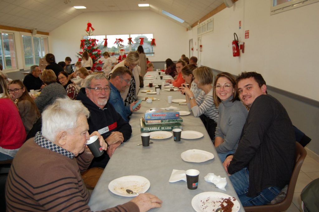 Le maire les a remerciés de leur présence et souhaité à tous de passer un excellent moment. Une après-midi bien animée, promenade en calèche dans les alentours avec Frédo, jeux en bois géants, jeux de palets, grenouille sauteuse, petits chevaux, baby-foot… qui ont donné lieu à de bonnes parties. Que du plaisir ! Et pour la gourmandise, un bon goûter avec crêpes, gâteaux, friandises, café, thé, chocolats, boissons. Et si un père Noël était installé dans le décor, le père Noël en personne est venu faire sa distribution que les enfants ont accueilli à grands cris. Il leur a offert une entrée au labyrinthe des falaises et à la ferme des falaises sans oublier biscuits et friandises. Quant aux soixante-deux ainés, un bon d’achat leur a été offert. Une belle après-midi pour tous où l’on s’est bien amusé, bien papoté. Des moments qui font du bien.