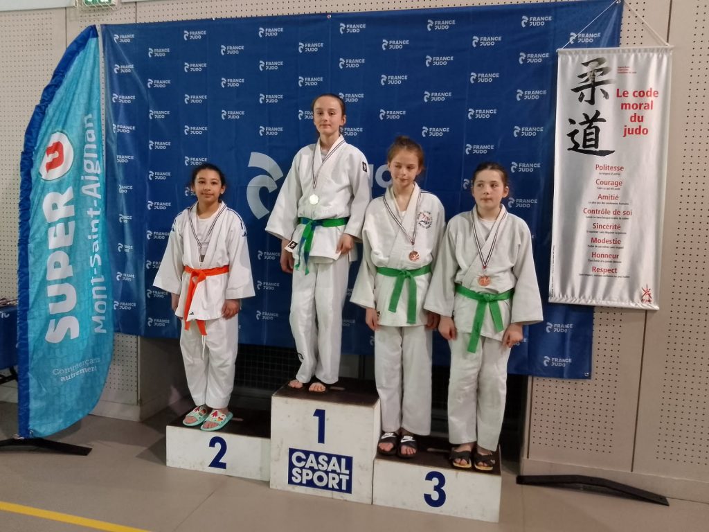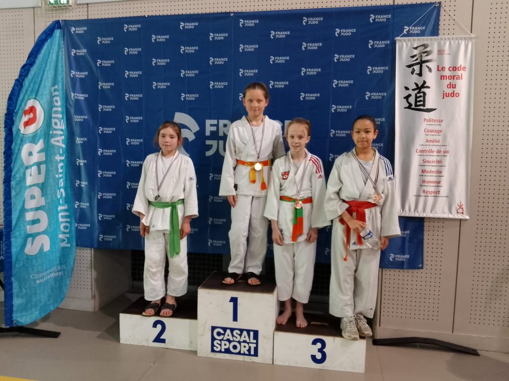 Toujours le samedi, c’est le championnat de Normandie par équipes de clubs cadettes qui se déroulait à Alençon : Lily Rose Charpentier, 3ème dans l’équipe du Judo Club de Grand Rouen en – 48 kg (double appartenance de licence de club).
